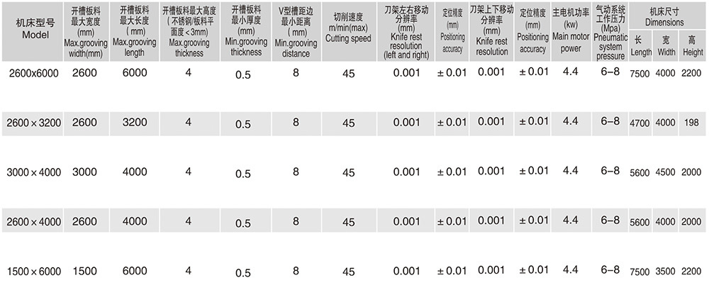 刨槽機是傳統(tǒng)刨槽機的升級產品。 采用框架式結構,高強度螺栓連接,整體剛性好,變形小。 該系列橫梁固不動,工件由后送料機構送進,工作臺面采用碳素工具制作, 高頻表面淬火后硬度達55-60HRC(普通臺面<30HRC)。 使工作臺硬度遠大于不銹鋼硬度,解決了傳統(tǒng)機型因工作臺面硬度低出現溝痕的現象, 保證工作臺面平面度≤±0.03㎜,徹底解決因工作臺面變形降低V型槽精度的問題, 延長了設備的使用壽命。 工作臺前后均設有托料裝置,防止加工過程中板料劃傷。